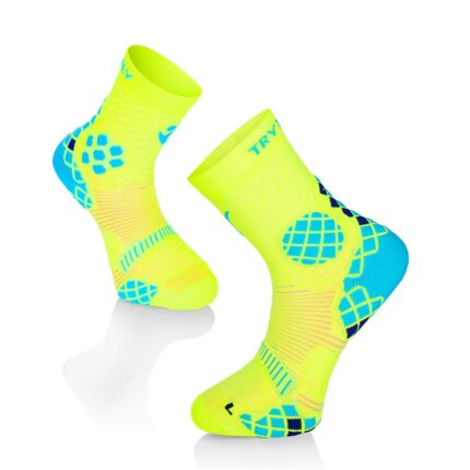 Οι κάλτσες Try to Fly Compression Socks είναι αναντικατάστατο μέρος του εξοπλισμού ενός αθλητή. Είναι κατάλληλες για μαραθώνιους, ποδηλασία και άλλα αθλήματα και σκληρές προπονήσεις. Το υψηλό επίπεδο συμπίεσης εξασφαλίζει την καλύτερη εφαρμογή της κάλτσας στα πόδια, την αποτρέπει από το να γλιστρήσει προς τα κάτω, βοηθά την κυκλοφορία του