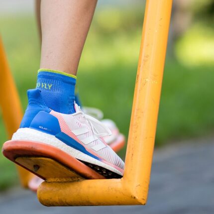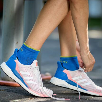 Οι ειδικές κάλτσες για τρέξιμο Try to Fly Running Socks είναι εξοπλισμένες με οργανικό βαμβάκι. Η αντικραδασμική προστασία σε ολόκληρο το κάτω μέρος του ποδιού, καθώς και οι ζώνες γύρω από τη φτέρνα και τα δάχτυλα των ποδιών εξασφαλίζουν άνεση κατά την άθληση. Οι πρόσθετες ελαστικές ζώνες βοηθούν στην καλύτερη εφαρμογή στα πόδια και εμποδίζουν τις κάλτσες να γλιστρήσουν προς τα κάτω. Η άνεση διασφαλίζεται επίσης με την απουσία ραφών στα δάκτυλα.