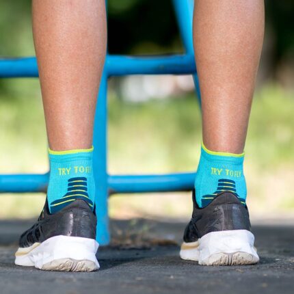Οι ειδικές κάλτσες για τρέξιμο Try to Fly Running Socks είναι εξοπλισμένες με οργανικό βαμβάκι. Η αντικραδασμική προστασία σε ολόκληρο το κάτω μέρος του ποδιού, καθώς και οι ζώνες γύρω από τη φτέρνα και τα δάχτυλα των ποδιών εξασφαλίζουν άνεση κατά την άθληση. Οι πρόσθετες ελαστικές ζώνες βοηθούν στην καλύτερη εφαρμογή στα πόδια και εμποδίζουν τις κάλτσες να γλιστρήσουν προς τα κάτω. Η άνεση διασφαλίζεται επίσης με την απουσία ραφών στα δάκτυλα.
