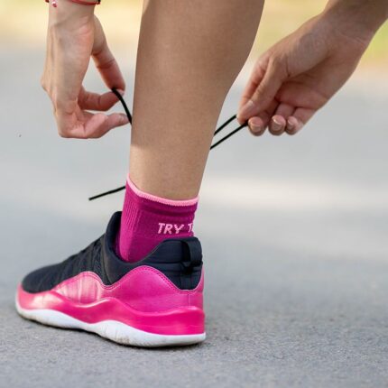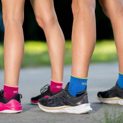 Οι ειδικές κάλτσες για τρέξιμο Try to Fly Running Socks είναι εξοπλισμένες με οργανικό βαμβάκι. Η αντικραδασμική προστασία σε ολόκληρο το κάτω μέρος του ποδιού, καθώς και οι ζώνες γύρω από τη φτέρνα και τα δάχτυλα των ποδιών εξασφαλίζουν άνεση κατά την άθληση. Οι πρόσθετες ελαστικές ζώνες βοηθούν στην καλύτερη εφαρμογή στα πόδια και εμποδίζουν τις κάλτσες να γλιστρήσουν προς τα κάτω. Η άνεση διασφαλίζεται επίσης με την απουσία ραφών στα δάκτυλα.