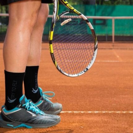 Οι κάλτσες Try to Fly Tennis Cotton Socks είναι πλούσιες σε οργανικό βαμβάκι. Οι ζώνες γύρω από τη φτέρνα, τα δάκτυλα, το πέλμα και τον αχίλλειο τένοντα είναι φτιαγμένες από απαλό θηλειωτό υλικό (terrycloth), το οποίο διασφαλίζει την άνεσή σας κατά την άθληση. Οι πρόσθετες ελαστικές ζώνες γύρω από τη γάμπα και το πόδι εμποδίζουν τις κάλτσες από το να γλιστρήσουν προς τα κάτω. Η άνεση εξασφαλίζεται με την πλέξη αζούρ κατά μήκος της κάλτσας που επιτρέπει στα πόδια να αναπνέουν.